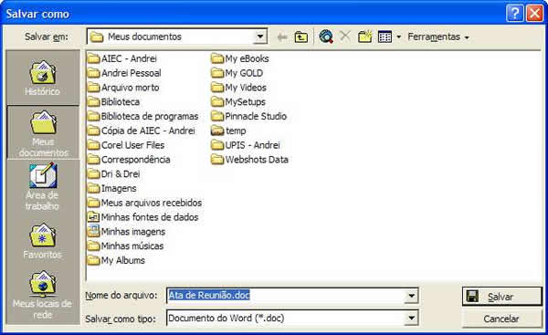 5 - Dê um duplo clique sobre o nome da nova pasta Wordaula que agora aparece na caixa de diálogo Salvar, a fim de transferi-la para a caixa de texto Salvar em. 6 - Na caixa de texto intitulada Nome do arquivo, digite Worddoc1. 7 - clique sobre o botão Salvar, para efetivar a gravação. 8 - Observe que o nome do arquivo (Worddoc1) aparece agora na Barra de Título no alto da tela, junto às palavras Microsoft Word. |