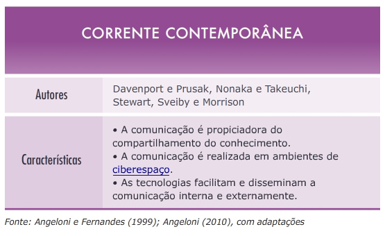 O quadro a seguir resume o modelo de comunicação do ponto de vista da corrente contemporânea.