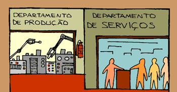 Os Departamentos de produção têm atuação efetiva sobre os produtos e recebem a apropriação dos custos. Veja alguns exemplos de Departamentos de produção: Os Departamentos de serviços não têm atuação direta nos produtos e sua finalidade é prestar serviços aos Departamentos de produção. |