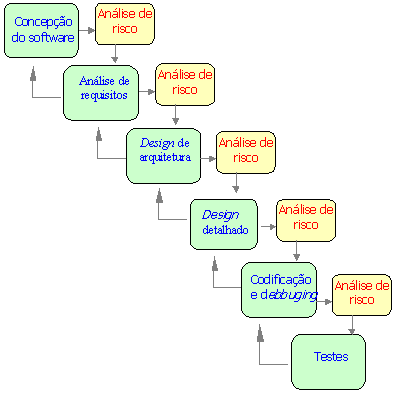 ao modelo cascata, tem uma etapa adicional: a análise de risco