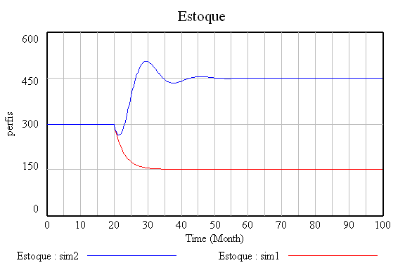 quando as vendas aumentam, o estoque não cai como na primeira simulação.
