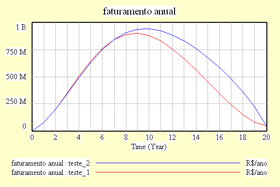 Realmente, embora o número de clientes aumente (marketshare) e o faturamento anual também aumente, será que isso sempre acontece? Vamos agora alterar a taxa de redução de preço de 15 para 25%: