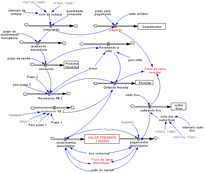 Diagrame o modelo quantitativo de acordo com as instruções e fórmulas detalhadas anteriormente. Lembre que antes de simular o modelo devemos verificar a consistência do modelo e consistências de unidades. Se necessário, incorpore variáveis para garantir a consistência das unidades do modelo.