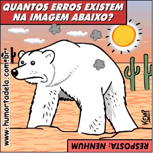 O texto que analisamos pertence ao gênero charge, cujo objetivo é a crítica humorística de um fato ou acontecimento específico. Outro elemento bastante importante para a leitura desse texto é o título, que nos remete a outro gênero que conhecemos, que é o jogo dos erros. Normalmente, esse tipo de jogo é encontrado em jornais e revistas e são classificados como passatempo. A pergunta “Quantos erros existem na imagem abaixo?” conduz o leitor a avaliar a imagem e supor que realmente existem erros: um urso polar numa região desértica, com sol escaldante. No entanto, a resposta que aparece no canto inferior da figura: “Resposta: Nenhum” – que, apesar de estar escrita em ordem inversa ao que se lê, permite uma leitura rápida e eficiente –, leva o leitor a rever o texto e, com base em seus conhecimentos prévios, reformular sua leitura. É sabido que o planeta está sofrendo com o aumento de temperatura. O aquecimento global é um fato. Com base nisso, é possível aceitar que, por causa das altas temperaturas no planeta, a situação retratada no texto se concretize. A informação sobre o meio no qual o texto foi veiculado complementa a leitura e a produção de sentido: o site www.humortadela.com.br. Sabemos que essa inscrição é um endereço na internet e o jogo que se faz com as palavras humor e mortadela, misturando as duas, remete-nos ao que é engraçado e muito consumido. Todos esses conhecimentos constituem diferentes tipos de contextos, ou seja, para que os significados do texto se tornem claros, é preciso levar em conta, tanto na fala como na escrita, o uso de inúmeros recursos, muito além das palavras e imagens, que compõem o texto e as experiências que o leitor tem. |