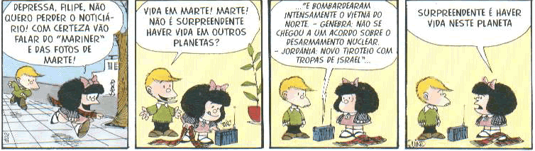 Com base no texto da tirinha acima, da Mafalda, assinale VERDADEIRO ou FALSO.