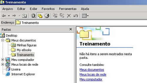4 – O nome da pasta vai estar selecionado. Você pode digitar o nome para esta pasta que vai se chamar Treinamento. b) Criando um novo documento 1 – Clique duas vezes em cima da pasta “Treinamento” para que seu conteúdo apareça na janela da direita.