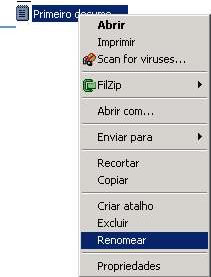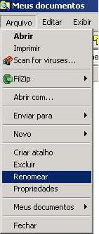 A opção Renomear também aparece no menu contextual do arquivo. Para ter acesso a este menu basta clicar com o botão direito em cima do arquivo ou pasta a ser renomeado. Aparecerá um menu ao lado do nome do arquivo com a opção Renomear, em seguida digite o novo nome do arquivo e pressione a tecla Enter.