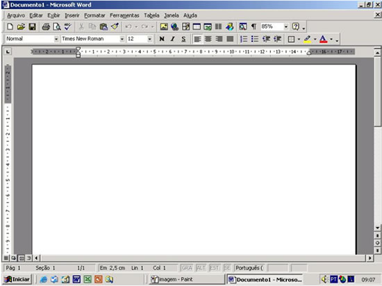 ativado o programa Microsoft Word, se a janela denominada Documento1