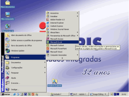 o programa Excel pelo menu Iniciar, deve-se proceder
