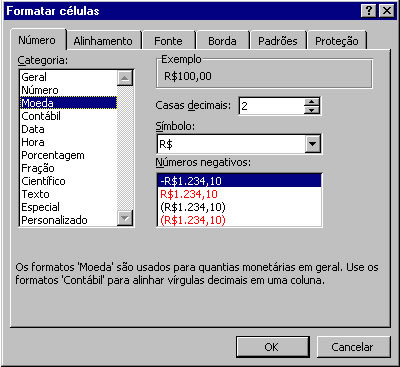 | DICA: Se alguma célula agora mostra o símbolo de número # em vez de valores, é porque a formatação "estourou" a largura das colunas. Nesse caso, a largura das colunas deve ser ampliada para poder exibir os respectivos valores.