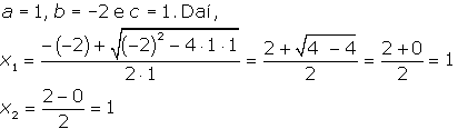Neste exemplo, as duas raízes são iguais a 1. Observe que D=0
