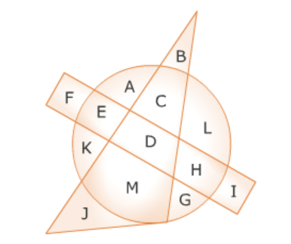 Problema 8 Ao trabalhar esse problema, considere o diagrama feito por três figuras geométricas: 1. um triangulo; 2. um círculo; 3. um retângulo. Quantas letras estão em exatamente duas (mas não em 3) dessas figuras?