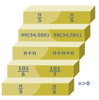 n/5 é menor que n/5. Se n = 0 os lados são iguais.