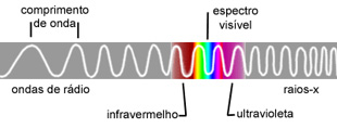 Passe o mouse sobre a figura para ouvir os sons Os olhos humanos não distinguem todas as ondas eletromagnéticas, somente conseguem ver as que se situam em uma faixa de frequência entre o infravermelho e o ultravioleta.