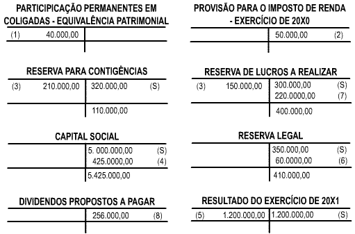 Para Transcrição para o razão, observe-se a correlação numérica com os lançamentos no Diário: