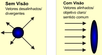 A visão gera um efeito muito importante para a organização. Imagine uma centopeia cujas patinhas resolvessem seguir seu próprio caminho, sem considerar as outras. Elas se movimentariam, mas o corpo da centopeia não sairia do lugar. Essa imagem serve para ilustrar uma organização sem visão. A visão integra todas as forças da organização na direção em que ela quer progredir. Esse é o impacto de uma visão efetiva, que alinha os vetores organizacionais em direção ao futuro desejado.
