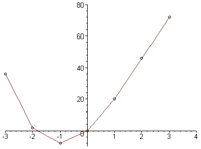 Quanto mais pontos introduzirmos teremos uma idéia melhor de como a função se comporta. O gráfico ficaria parecido com o seguinte: