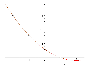 A curva vem descendo e parece que a partir de x=2 ela começara a subir. Vamos jogar mais dois pontos para verificar se isso acontece de verdade.