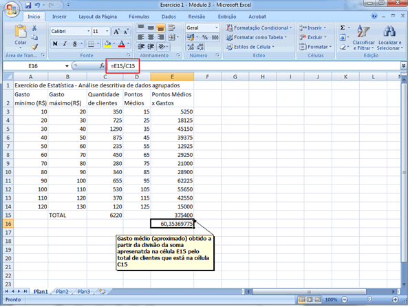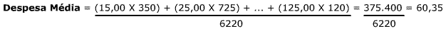 | Como o ponto médio representa, nesse contexto, a média para cada intervalo, o cálculo da despesa média será feito de forma similar àquela apresentada anteriormente, ou seja: