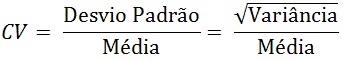 | Também como já visto anteriormente, deve-se buscar o coeficiente de variação e para chegar a ele é necessário calcular o desvio-padrão, que por sua vez é a raiz quadrada da variância.