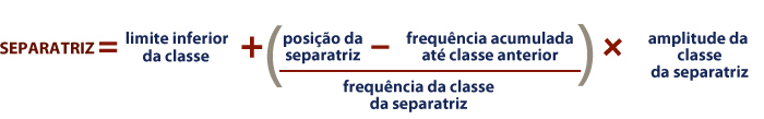Assim, a determinação do valor da mediana deve partir do limite inferior do intervalo no qual já se sabe que ela está, no caso R$ 40,00, mais "um pedaço" dentro daquele intervalo, que deve ser utilizado para se chegar até a mediana (correspondente ao percentual calculado como sinalizado acima). No exemplo, deve-se tomar 85,14% da amplitude do intervalo de R$ 10,00, no qual está a mediana. Consequentemente, o valor da mediana no exemplo será: Mediana = 40 + (0,8514 x 10) = 40 + 8,51 = 48,51 Significando que 50%