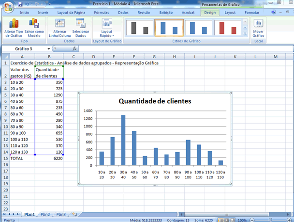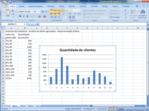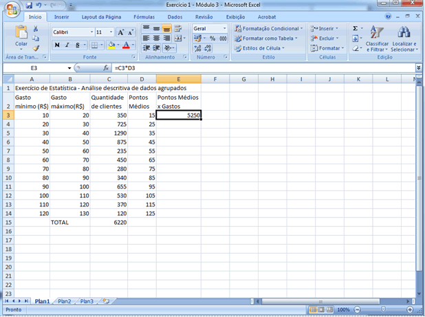 | É certo, então, que surge a necessidade de adaptações na forma de calculá-las. Se 350 clientes gastaram de R$ 10,00 a R$ 19,99, quanto teria gastado cada um? A mesma pergunta vale para as outras classes.