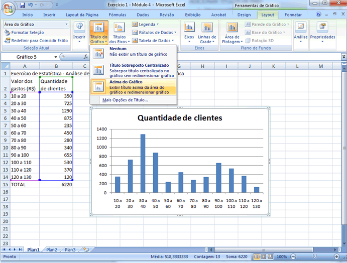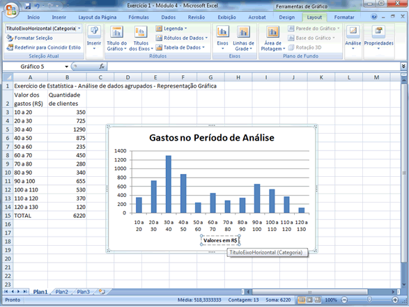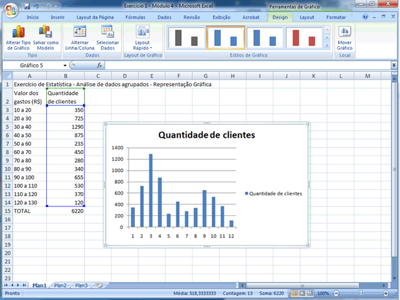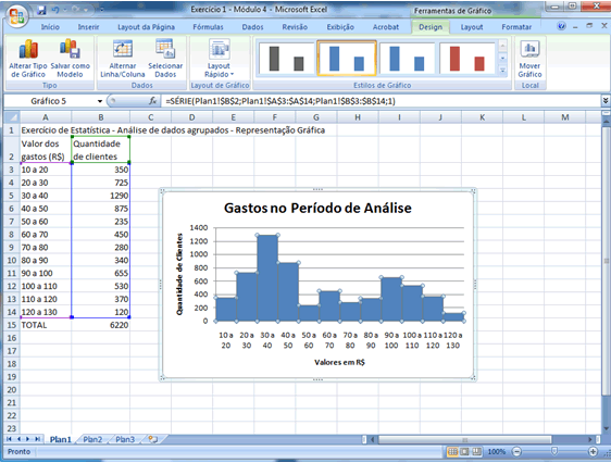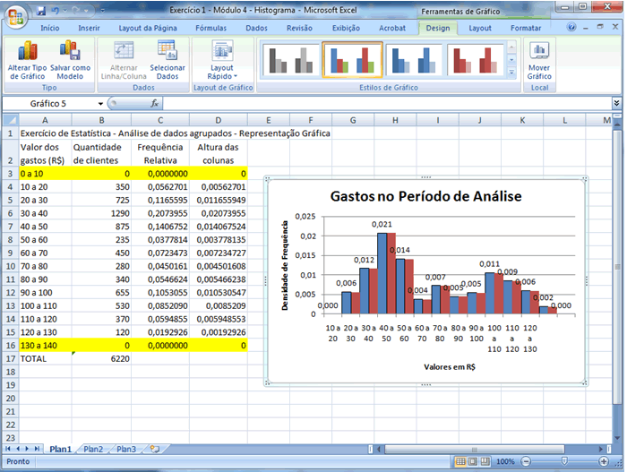 Se você já está familiarizado com os recursos gráficos do Excel sabe que outros ajustes podem ser feitos, particularmente no que diz respeito a cores e formatos. Caso contrário, o que foi feito até aqui é adequado e expressa convenientemente a situação dada. |