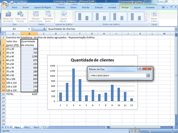 O gráfico dessa última tela recebe a denominação de histograma, embora alguns autores também atribuam essa denominação àquele inicialmente obtido com as frequências reais no eixo Y. |