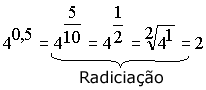 Exemplo: calcule o valor de quatro elevado a 0,5.