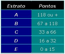 quatro classes sociais, com base em um sistema de pontos estabelecidos