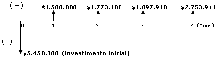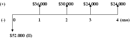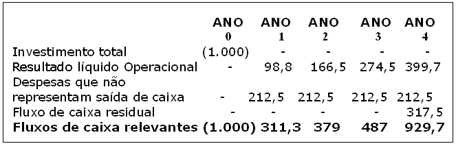 do equipamento, determinado valor que exigiu desembolso de caixa. Você já sabe que o valor desse investimento, de acordo com a legislação do imposto de renda, poderá ser depreciado, de acordo com a natureza do equipamento, por determinado período de tempo. Por exemplo, cinco anos. Para facilitar, não irá ocorrer depreciação acelerada; portanto, nos próximos cinco anos, aquele valor contabilizado como investimento inicial, referente ao equipamento em si (valor de aquisição mais gasto de instalação) irá experimentar um lançamento equivalente a vinte por cento do valor contábil. Você