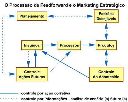 Os indicadores de desempenho exercem um importante papel no que tange ao controle entre o padrão desejado e o padrão verificado pela organização em relação ao mercado: o controle por ações corretivas e por informações possibilita o feedforward ou a retro-alimentação sistêmica da organização. Do ponto de vista estritamente lógico, os objetivos são visualizados e devem ser analisados porque se realizarão no futuro. Do ponto de vista da eficácia da decisão, é preciso saber “ver antes”, para modificar, aproveitar ou induzir ocasiões a favor da empresa.