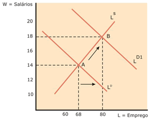 Quando o mercado de trabalho sai do seu equilíbrio, o nível de emprego diminui e consequentemente aumenta o desemprego. Entre o conjunto de