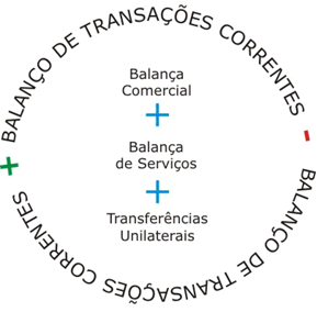 A Balança de Transações Correntes representa a soma algébrica dos resultados da Balança Comercial, Serviços e Transferências Unilaterais. Na Balança de Transações Correntes, estão identificados os fluxos de comércio de bens e serviços ou o lado real da economia. A Balança Comercial representa o resultado líquido das compras e vendas de mercadorias com o exterior. Essa conta é a única incluída no Balanço de Pagamentos, em que é possível visualizar o conteúdo das transações. A Balança de Serviços, também chamada de grupo de invisíveis, representa o resultado líquido das transações de serviços (Bens Intangíveis) entre residentes no Brasil com o exterior. Transferências Unilaterais representam os movimentos de remessas de imigrantes, doações internacionais e compensações de guerra. Entende-se por transferência todo e qualquer pagamento em que não houver uma contrapartida de trabalho ou serviço realizado. A Conta Movimentos de Capital indica os deslocamentos de fluxos de capital entre o país e o resto do mundo. Nela estão inseridas três subcontas: