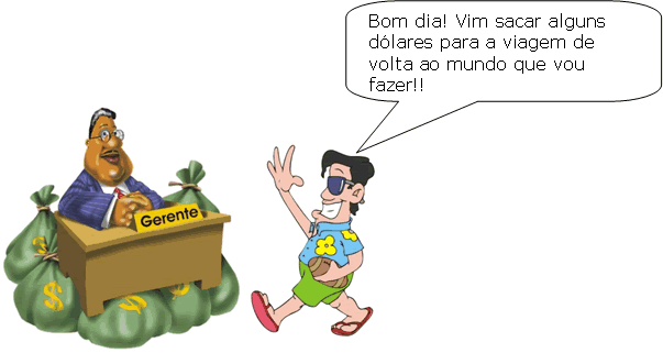 Por exemplo: um dólar americano valia (em 20.08.2003) cerca de três reais - US$ 1,00 = R$ 3,00 (um para três). Ao longo do tempo, esta relação poderia mudar de um para quatro ou um para dois. |