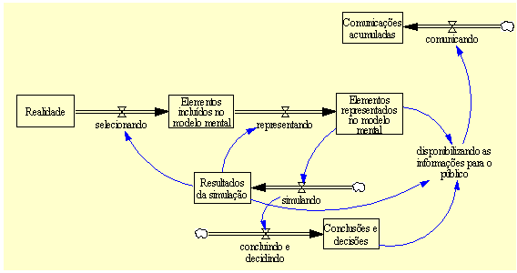 O desenho da estrutura de um sistema em estudo é a tarefa principal do grupo. Inicia-se com uma estrutura simples, adicionando-se, sucessivamente, camadas mais complexas. O trabalho pode ser iniciado pela construção de Diagramas de Ciclos Causais ou a partir da representação do modelo que será o produto final, ou seja, um Diagrama de Fluxos e Estoques.