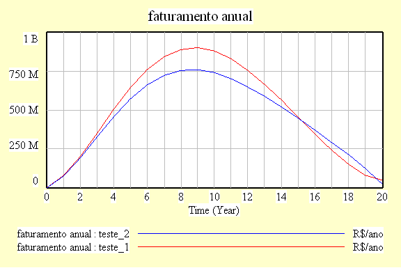 Realmente, embora o número de clientes aumente (marketshare) e o faturamento anual também aumente, será que isso sempre acontece? Vamos agora alterar a taxa de redução de preço de 15 para 25%: