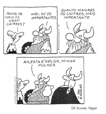 Vejamos mais um exemplo. Leia a tira a seguir, de Hagar, famoso personagem do escritor americano Dik Browne.