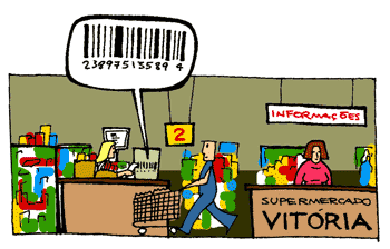 Quando se entra num hipermercado, vê-se em grandes quantidades mercadorias à disposição dos clientes. Com a utilização do código de barras, procedimento comum na maioria dos estabelecimentos comerciais, a baixa da mercadoria vendida pode ocorrer no momento da venda, desde que a empresa tenha sistema integrado. |