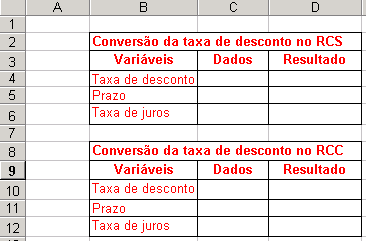 DE CÁLCULO PARA CONVERSÃO DE TAXAS DE DESCONTO SIMPLES COMERCIAL