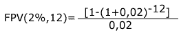 igual a 12, o fator de valor presente (FPV(2%,12))será igual a