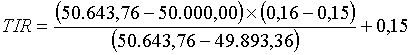 O cálculo da TIR é obtido mediante processo de tentativa e erro e pela aplicação da seguinte fórmula: