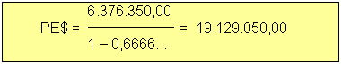 Vimos no exemplo que os custos variáveis representam $ 12.752.700,00, enquanto as vendas em reais seriam de $ 19.129.050,00.