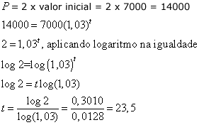 de 3% ao ano. Resolução: a) Daqui a 23 anos e 6 meses aproximadamente a população dobrará. |