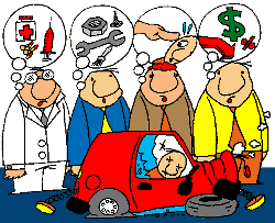 com os ferimentos dos ocupantes; um engenheiro se concentra nos estragos