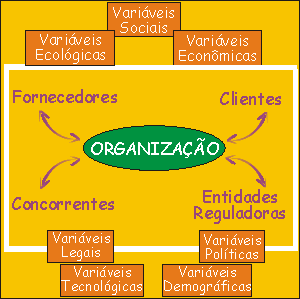 O ambiente de tarefa representa o domínio da empresa, é a área de dependência da empresa em relação ao meio. Conhecer o seu domínio representa uma ação estratégica para que a empresa possa aumentar a sua capacidade de influenciar e diminuir a sua dependência em relação ao ambiente. O domínio ou poder de uma organização sobre o seu ambiente de tarefa e estabelecido pela competição e negociações entre as organizações que compõem o ambiente de tarefa. Os componentes do ambiente de tarefa são os responsáveis pelas oportunidades ou ameaças para as operações da organização. Neste sentido, o administrador deve saber definir o seu domínio estratégico, posicionar-se estrategicamente e estabelecer as interfaces necessárias para diminuir as incertezas ambientais e aumentar as possibilidades de sucesso da organização. Diagrama do ambiente geral, ambiente de tarefa e organização ![]() |