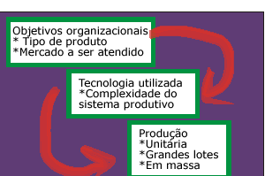 De acordo com Joan Woodward, a tecnologia consiste em fator determinante das características de alguns aspectos organizacionais. Neste sentido, dependendo da tecnologia utilizada, uma empresa pode ter um número maior ou menor de níveis hierárquicos e de funcionários subordinados a um chefe, uma comunicação mais ou menos formalizada, entre outros aspectos. Conclui que as tecnologias