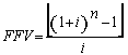 A equação (11) revela que o valor futuro de uma série uniforme postecipada (SUP) pode ser obtido mediante a multiplicação do termo da série (PMT) pelo fator de valor futuro, dada uma taxa “i” e um número de termos “n”, FFV (i,n) ou Snù i, assim, têm-se que: