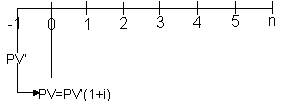 Por analogia, podemos inferir que, caso a fórmula ,seja aplicada em uma série antecipada, os fluxos também serão trazidos para um período anterior ao primeiro fluxo da série que, no caso, será o período “-1”, tendo em vista que a série, por ser antecipada, começa no momento “0”.