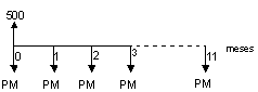 12 prestações, iguais e sucessivas, a primeira ocorrendo